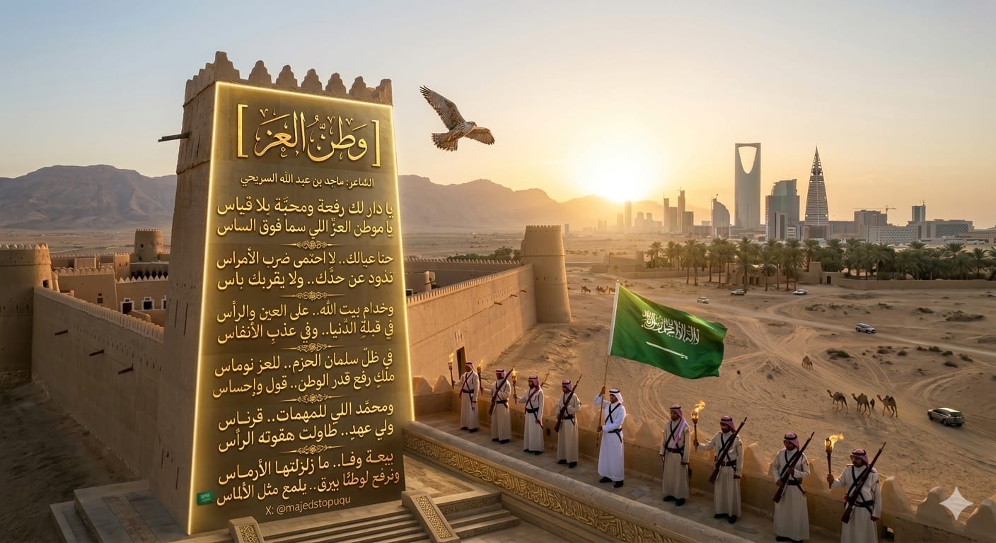 الشاعر: ماجد بن عبد الله السريحي @majedstopuqu يا دار لك رفعة ومحبّة بلا قياس يا موطن العزّ اللي سما...