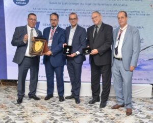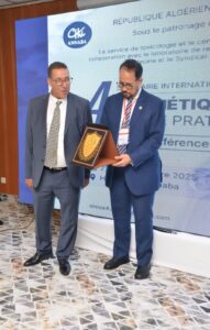 بوسام المجلس العربي للإبداع والابتكار، إضافة إلى تقديم درع تكريمي لرئيس الملتقى البروفيسور رشيد جعفر تقديرًا لجهوده في إنجاح هذا الحدث العلمي الدولي، بمشاركة البروفيسور حميد بوجليدة ممثل المدرسة العليا للأساتذة.